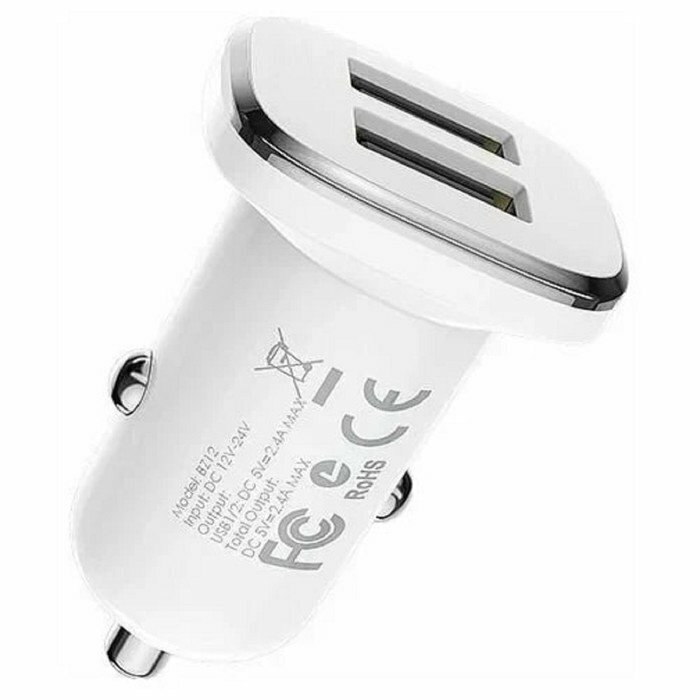 Автомобильное зарядное устройство BZ12, 2xUSB, 2.4 А, белое