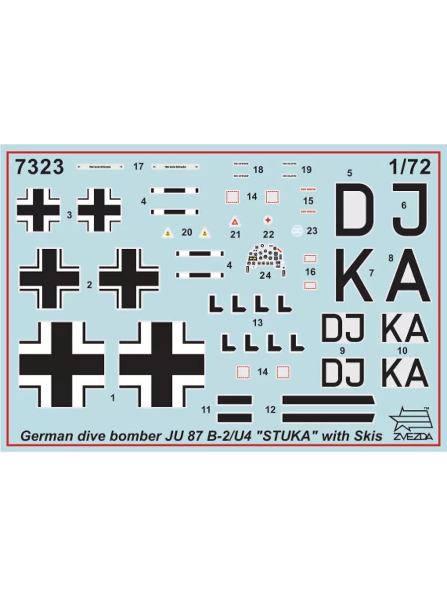 Сборная модель ZVEZDA 1/72 Немецкий пикирующий бомбардировщик Юнкерс Ju-87 B2 на лыжах 7323