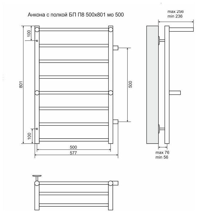 Полотенцесушитель Terminus Анкона П8 577x801 с полкой водяной боковое подключение интересное: