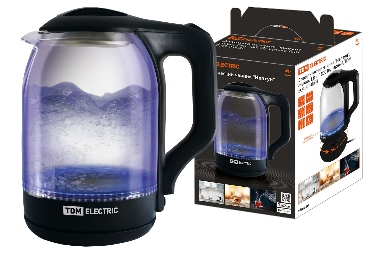 Электрический чайник "Нептун", стекло, 1,8л, 1800 Вт, черный, TDM