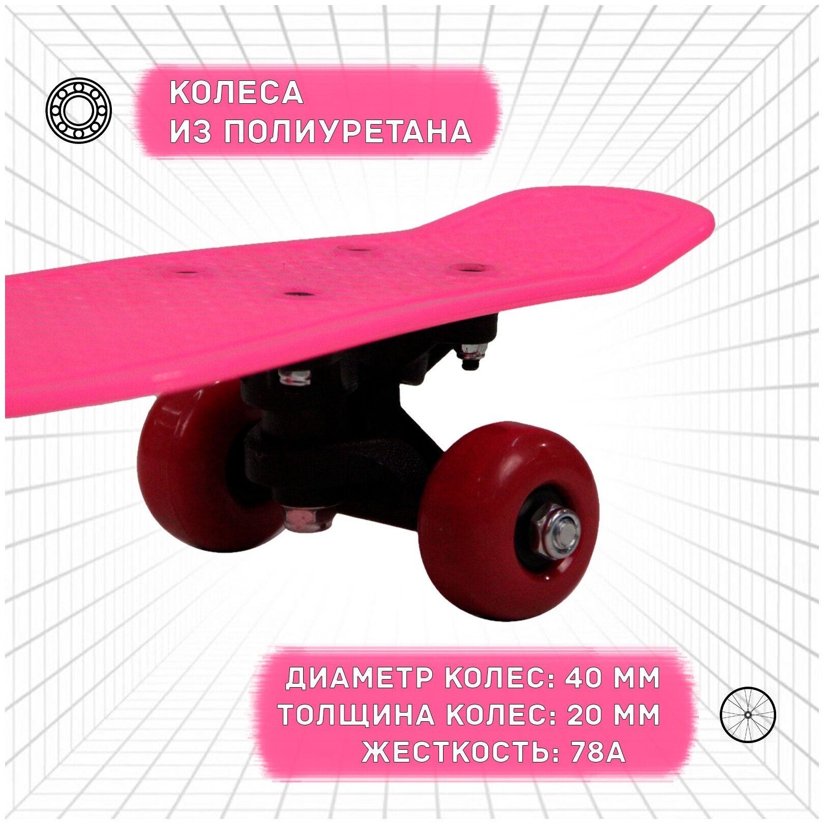 Пенни борд 42см стандартный, розовый интересное: