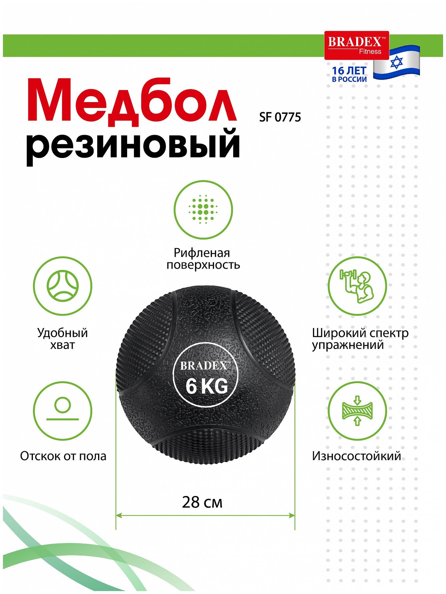 BRADEX Медбол резиновый, Bradex SF 0775, 6кг, BRADEX