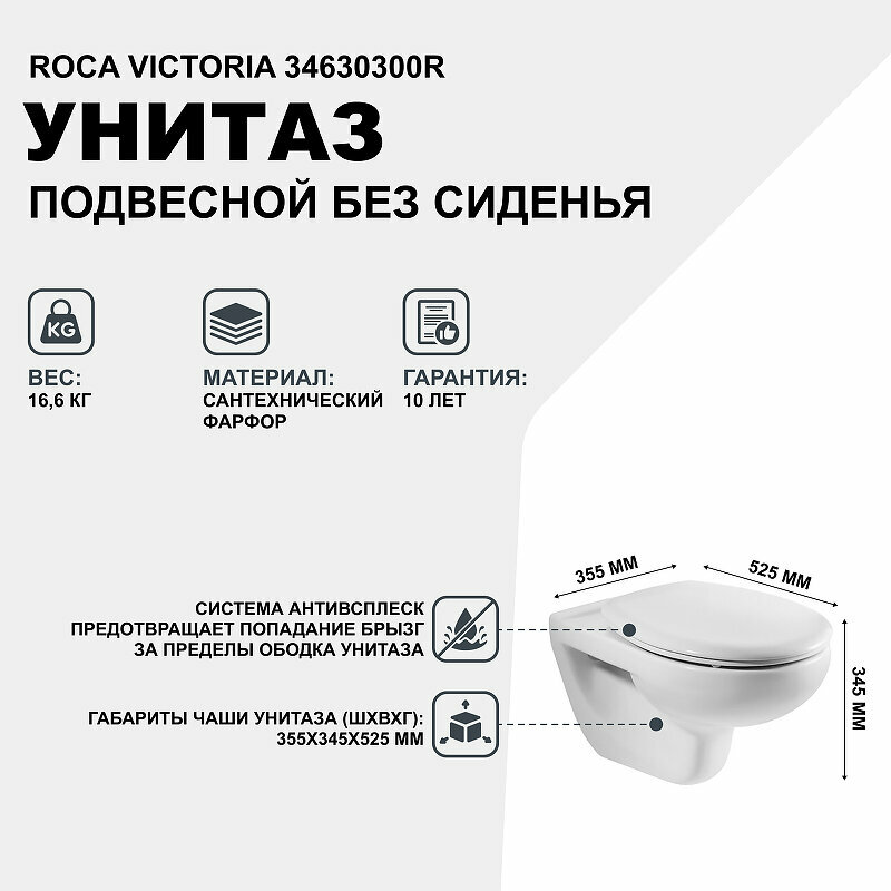 Унитаз Roca Victoria 34630300R подвесной без сиденья