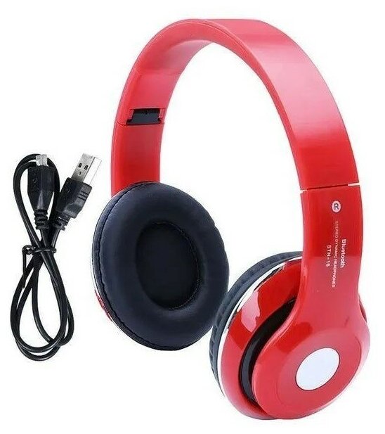Купить Наушники беспроводные полноразмерные STEREO HEADPHONES / микрофон/ Aux/ Bluetooth/ MP3 плеер/ FM-радио/ аккумулятор 300 mAh/ складные/ стерео/ Красные
