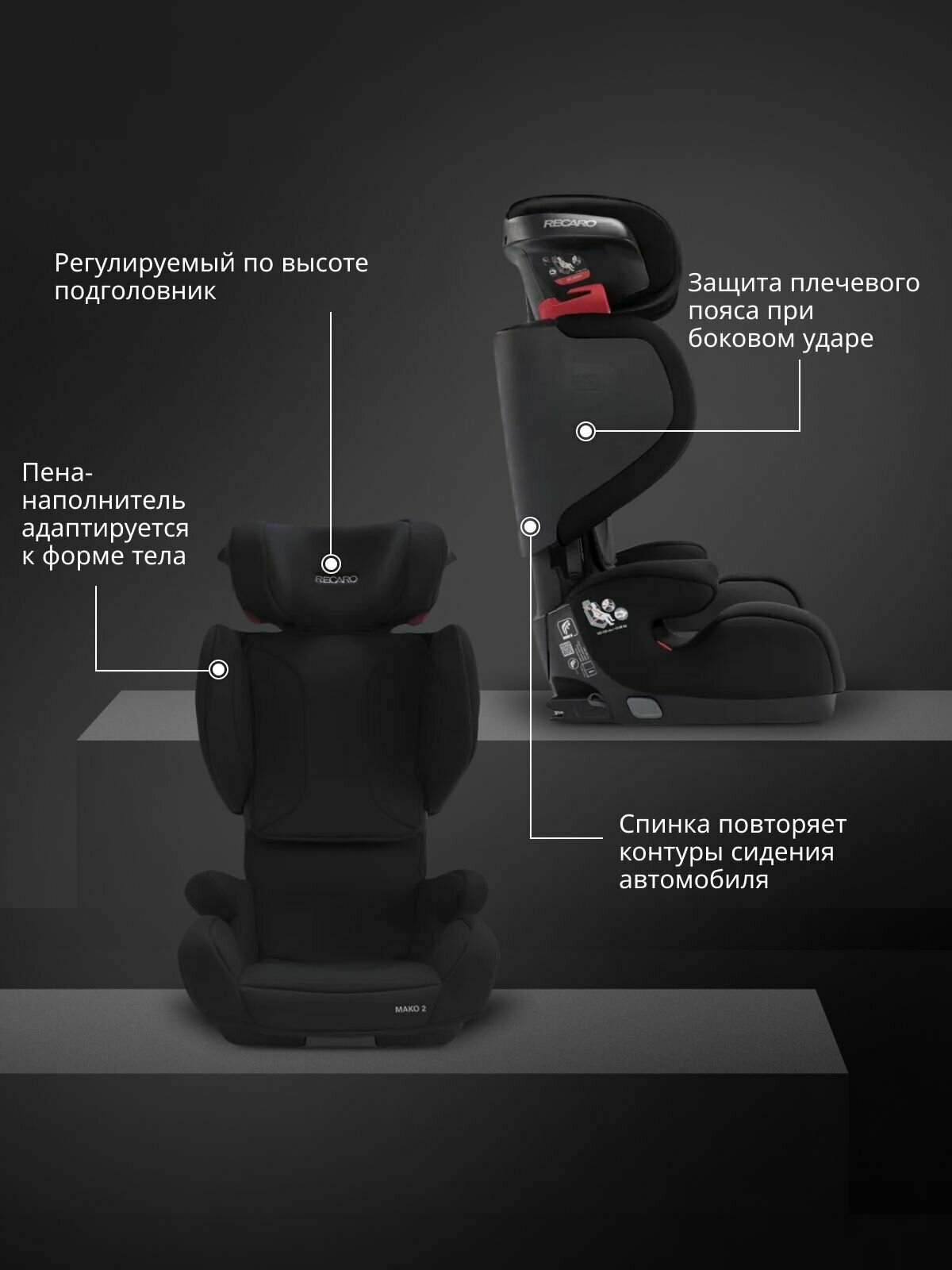 Детское автокресло Recaro Mako Core 2, группа 2-3 (от 15 до 36 кг), цвет Deep Black