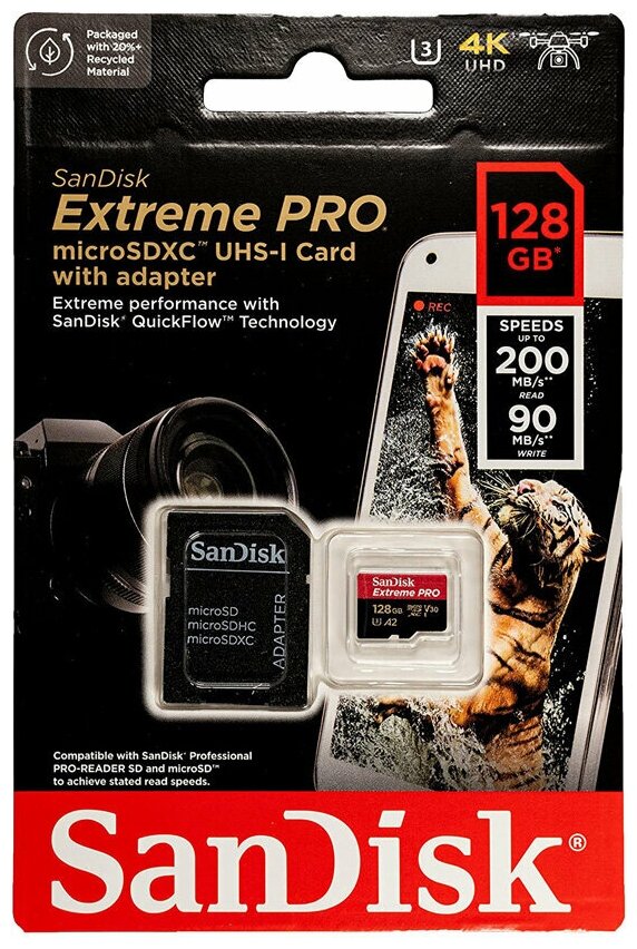 СохранитьКарта памяти SanDisk MicroSDXC 128GB Extreme PRO V30 U3 A2 200/90 МБ/с интересное: