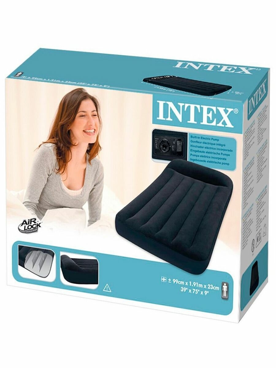 Надувной матрас Intex c подголовником Pillow Rest Classic Bed, 99x191x23cм, встроенный насос, 66779