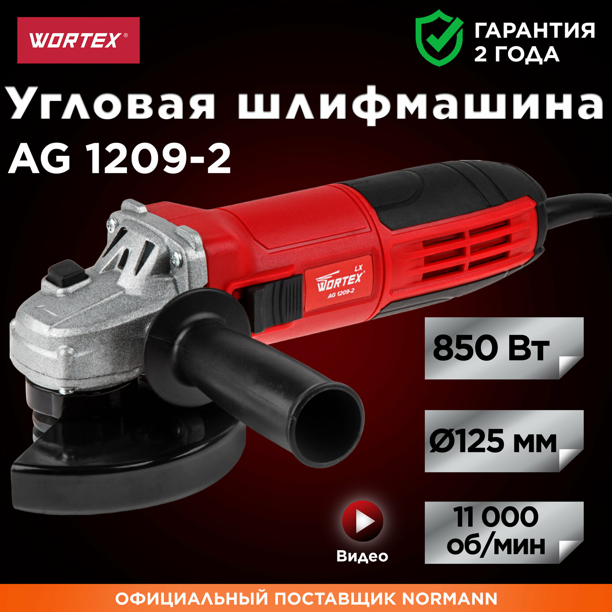 Купить Одноручная углошлифмашина WORTEX LX AG 1209-2 в кор. (850 Вт, 125х22.2 мм, игол.подшипник, бронир. ротор) (0329083)