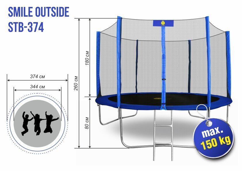 Купить Батут Smile outside синий 12ft с защитной сеткой и лестницей