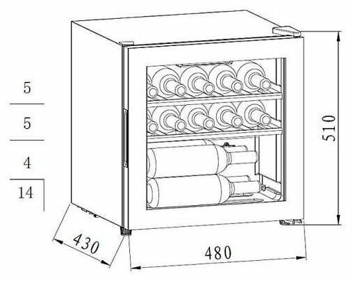 | Емкость винного шкафа, бут. | 14 |