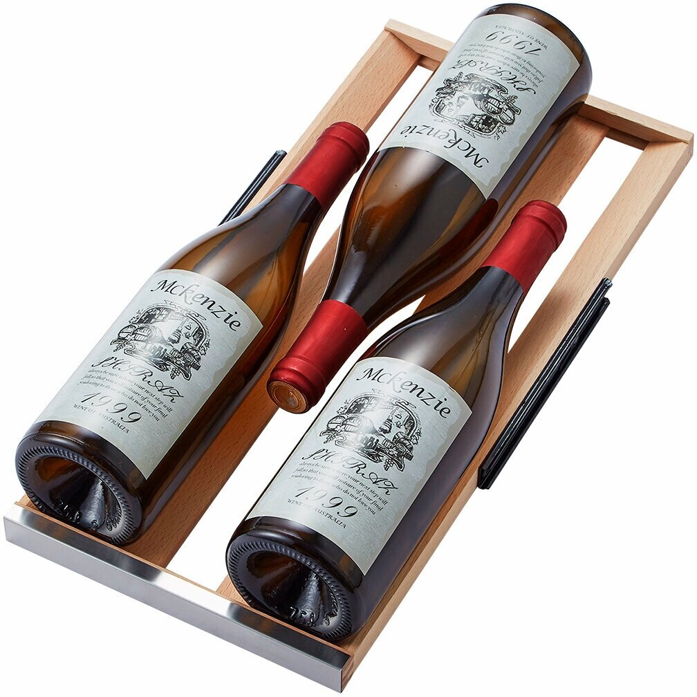 | Плюсы: | Дисплей. Индикатор температуры. Выдвижные полки из бука. |