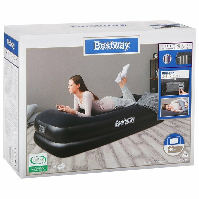 Bestway Кровать надувная Twin, 191 х 97 х 46 см, со встроенным электронасосом, 67401 интересное:
