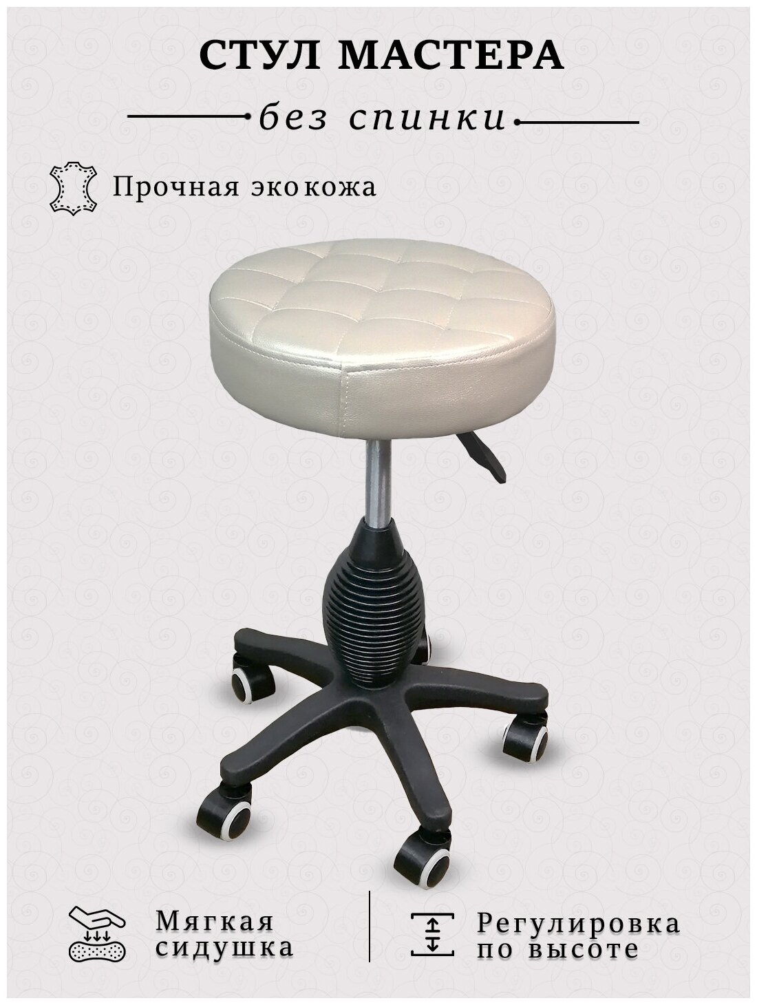Стул на пластиковом основании для мастера (каретная стяжка, бежевый перламутр) интересное: