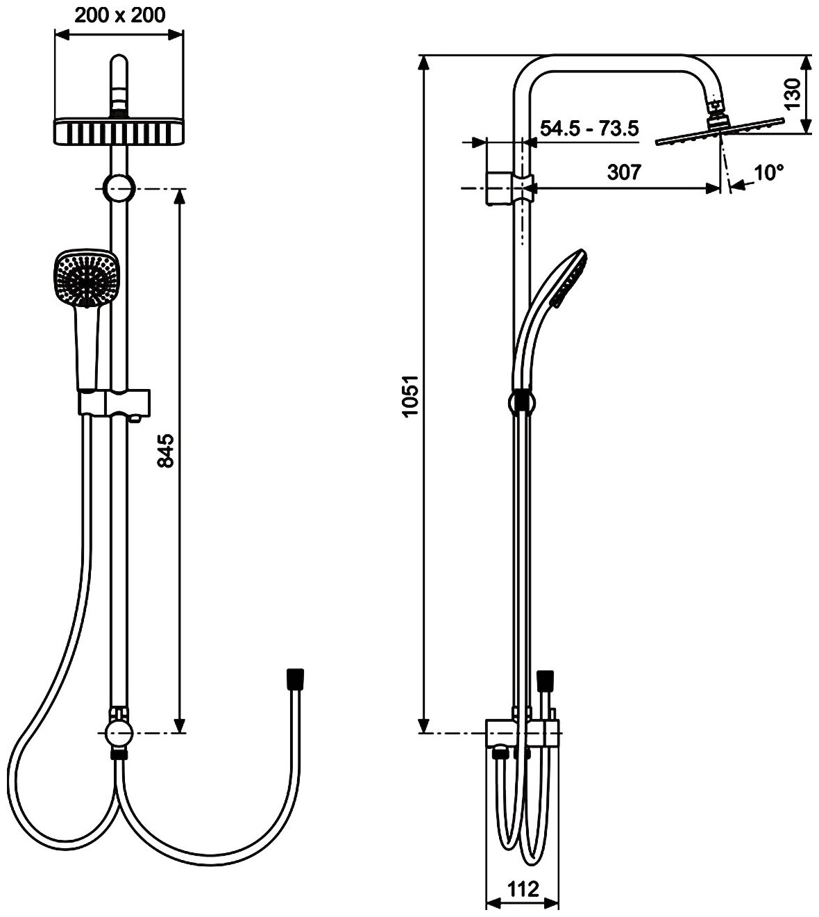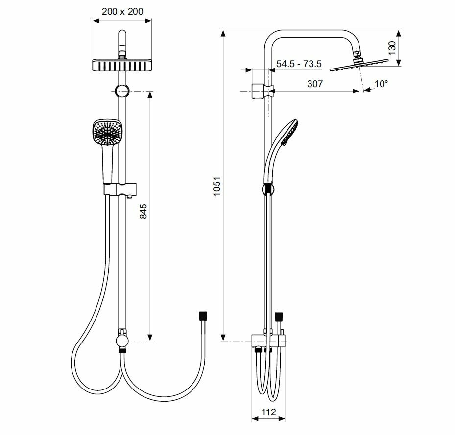 | Дополнительная информация | высота стойки для душа: 1051 мм; диаметр душевой лейки: 100 мм; длина верхнего душа: 200 мм; ширина верхнего душа: 200 мм |
