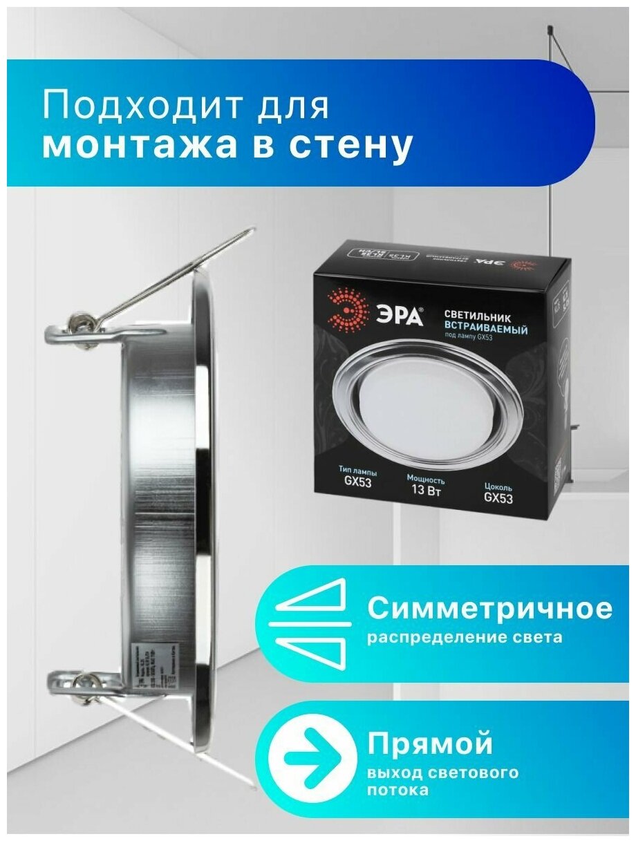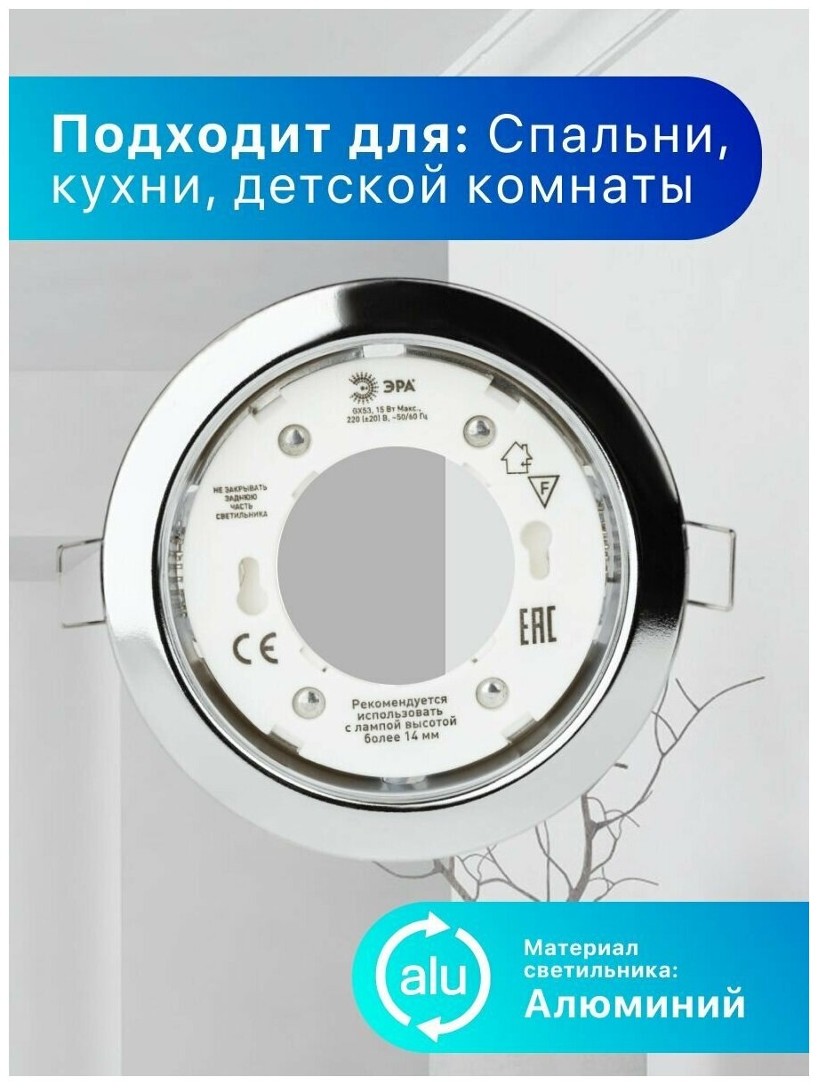 Встраиваемый светильник под лампу GX53 ЭРА KL35 CH (б/к) 220V 15W хром, интересное: