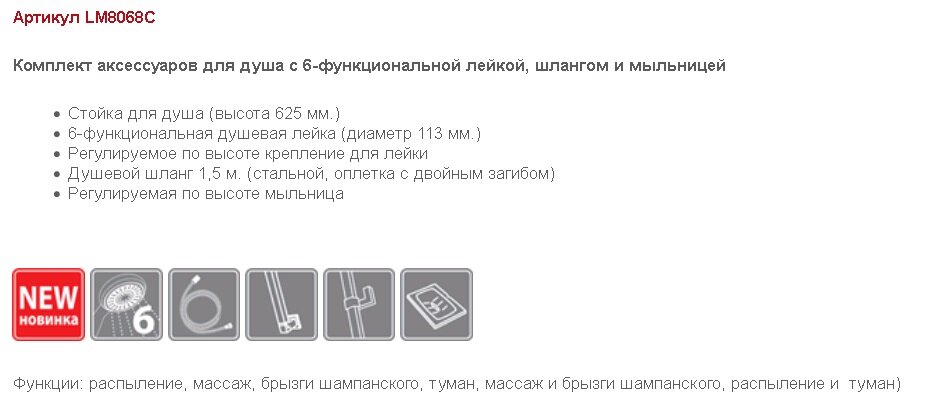 Душевой комплект Lemark LM8068C (стойка, лейка, шланг, мыльница), хром интересное: