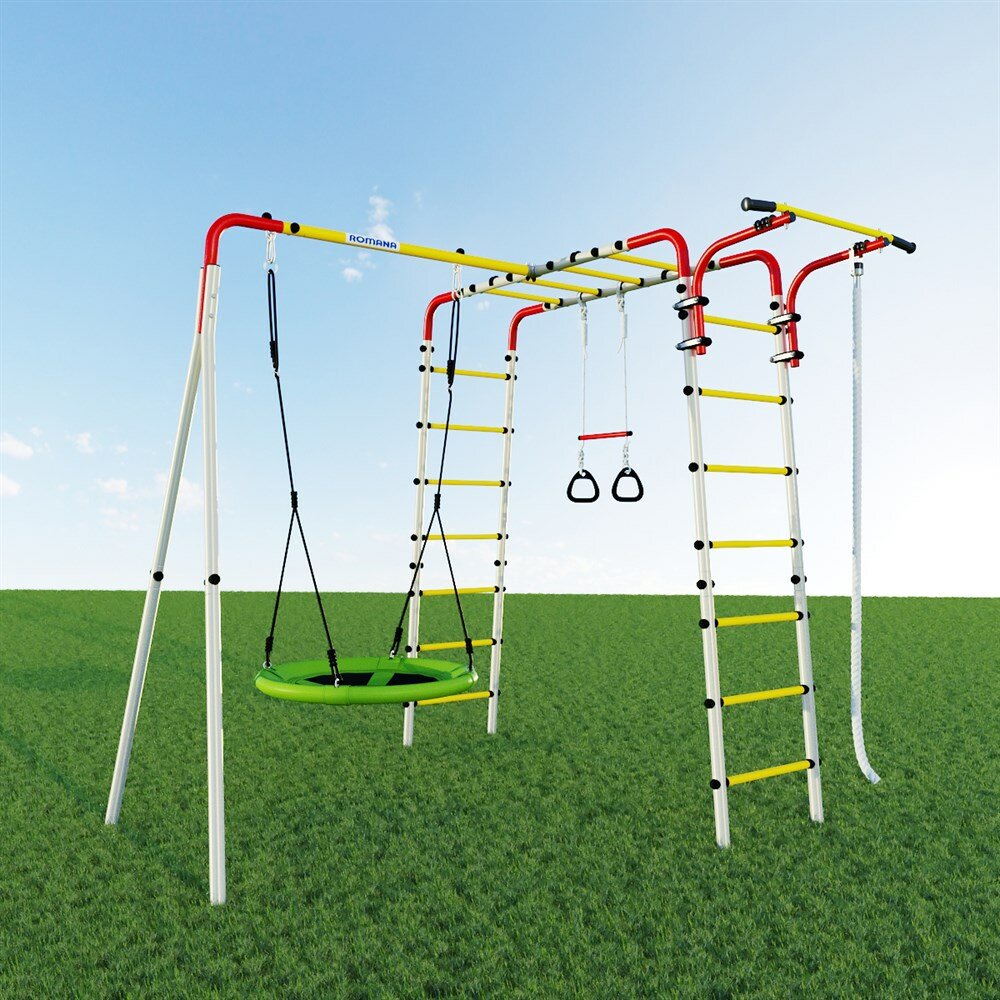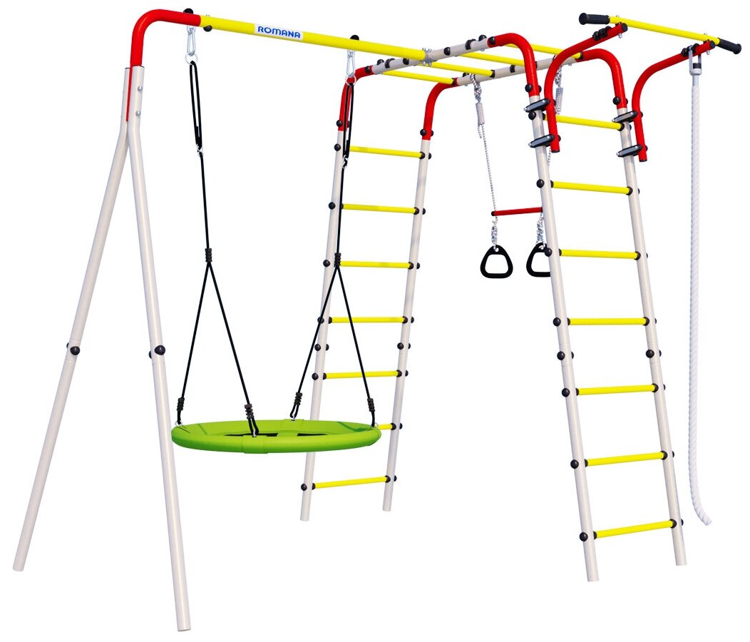 | В комплекте | гимнастические кольца, канат, качели, лестница, рукоход, турник |