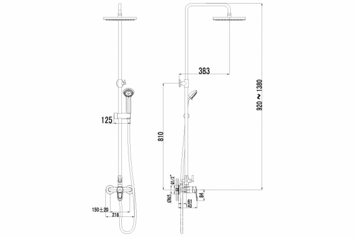 | Дополнительная информация | высота стойки для душа: 1706 мм; длина верхнего душа: 180 мм; ширина верхнего душа: 230 мм |