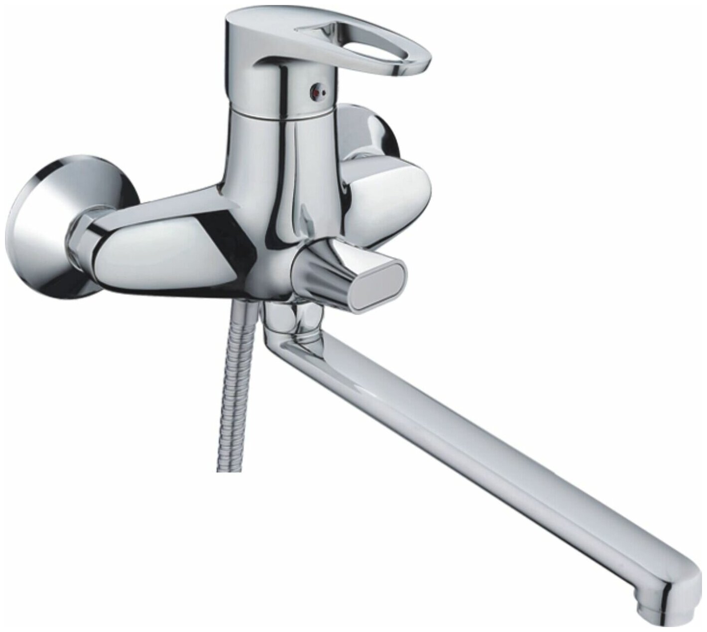 Смеситель для ванны Haiba HB2265 с длинным изливом и переключателем в корпусе, латунь, хром. интересное: