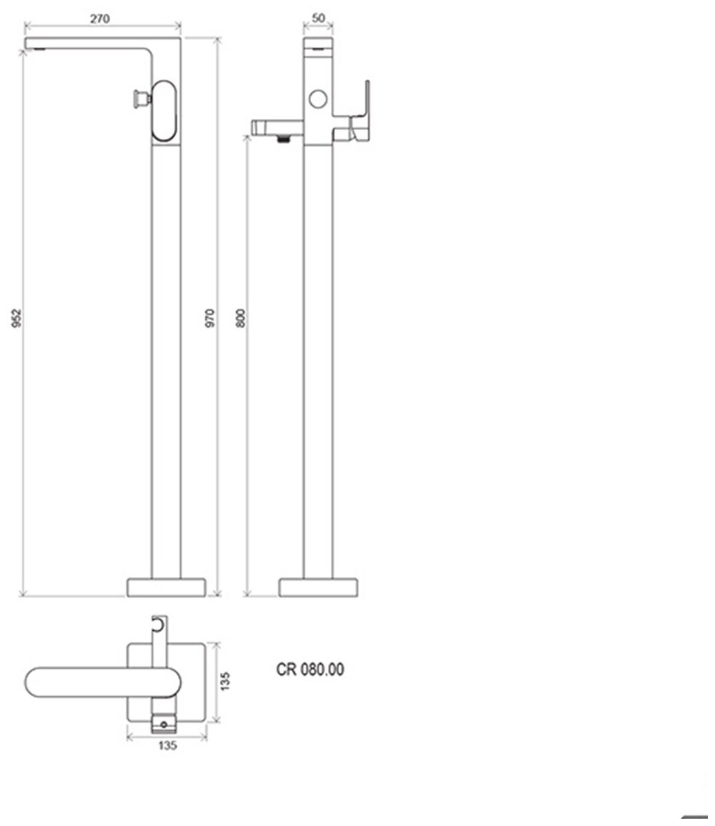 Ravak X070101 Chrome CR 080.00 Смеситель для ванны, напольный, хром
