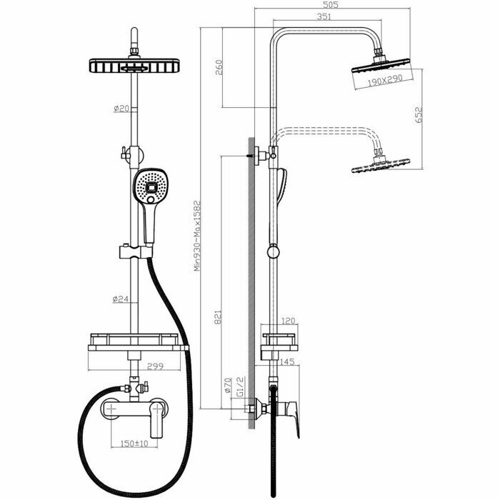 | Форма бокового душа | круглая |