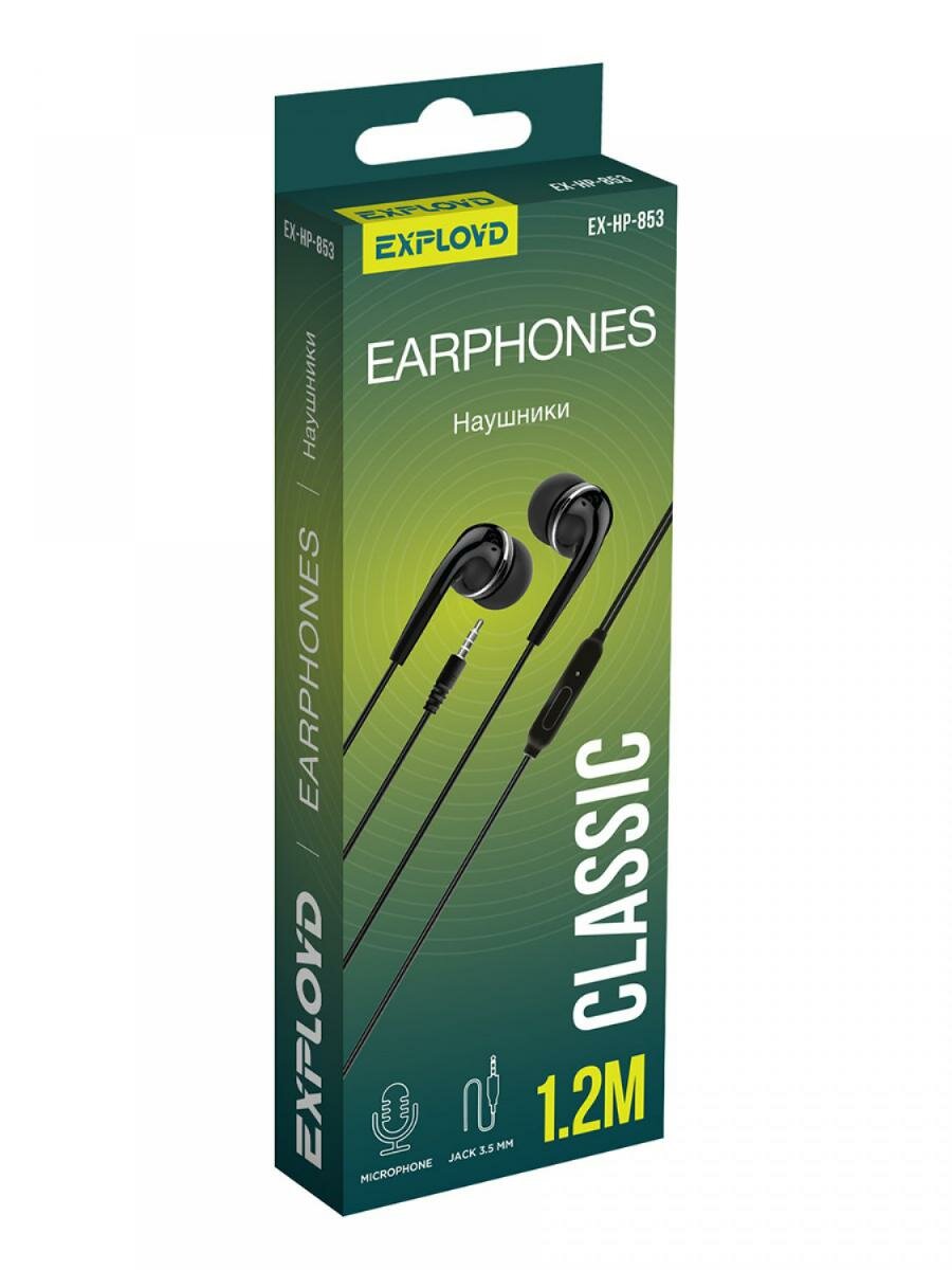 Купить Наушники Exployd EX-HP-853, вакуумные, микрофон, 108 дБ, 32 Ом, 3.5 мм, 1.2м, черные