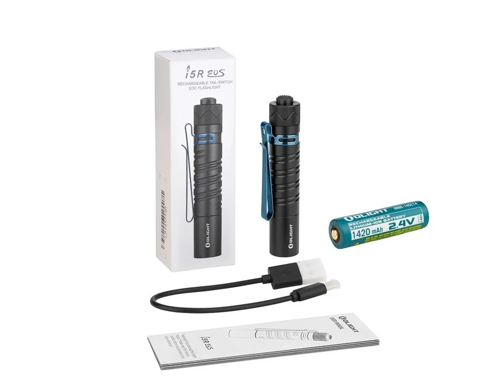| Подробная комплектация | Фонарь Olight i5R EOS, Lithium аккумулятор Olight ORBC-145C14, USB Type-C кабель, клипса, упаковка. |