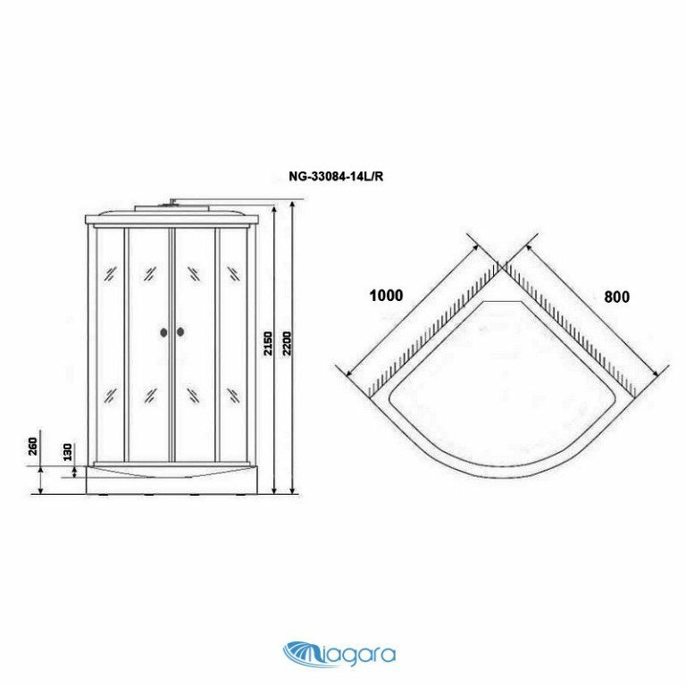 Душевая кабина Niagara NG-33084-14LP 100х80, поддон средний, стекло матовое