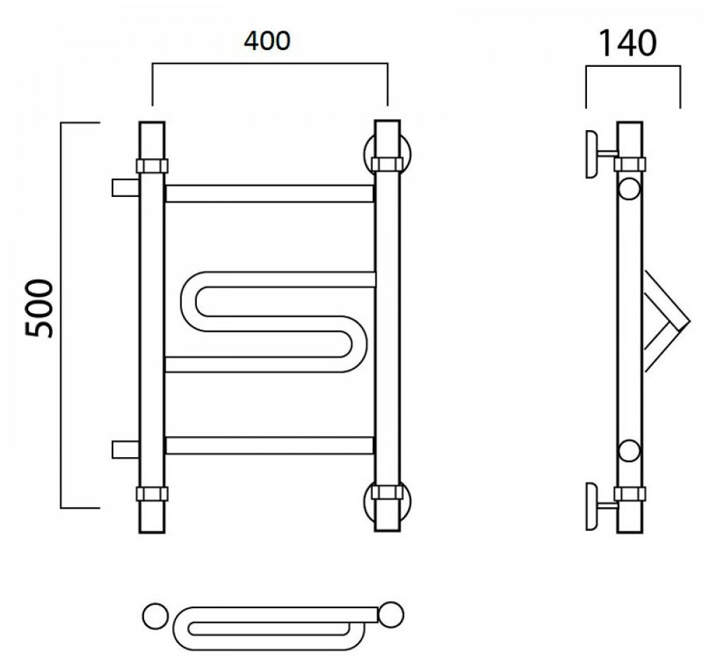 Купить Водяной полотенцесушитель Роснерж Зиг-Заг L105001 50x40 с боковым подключением 400