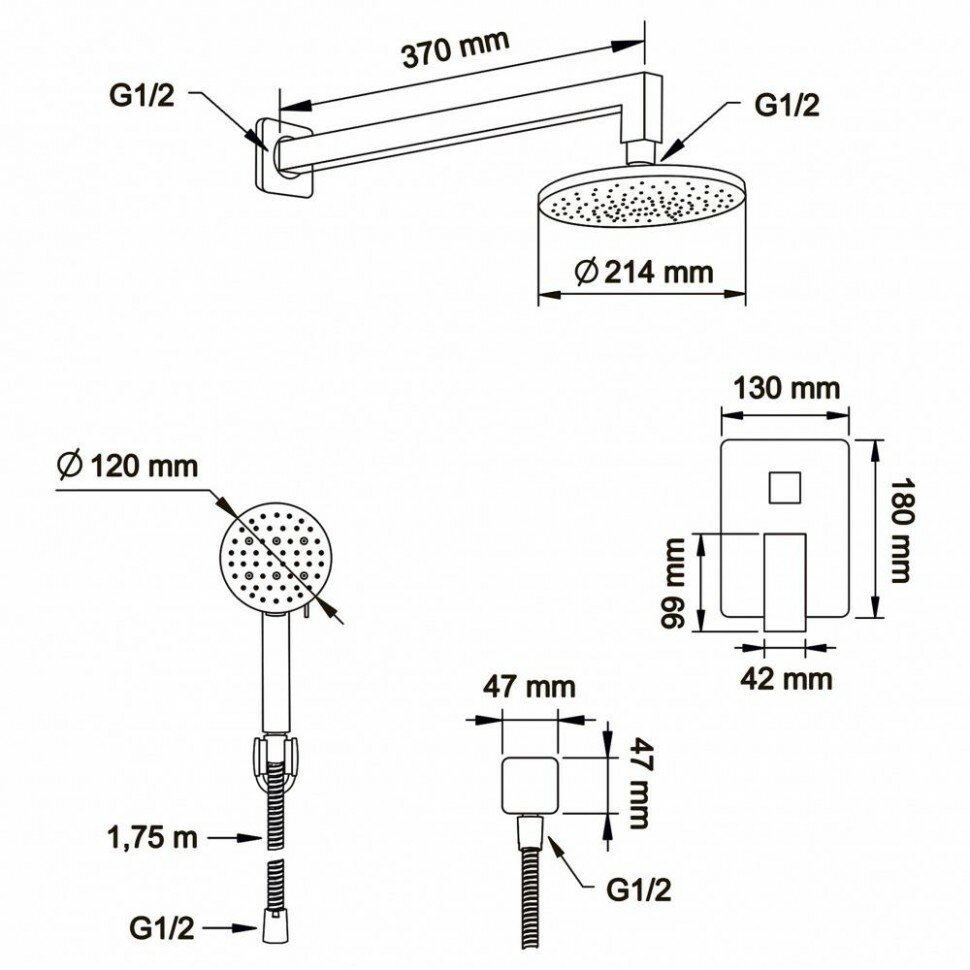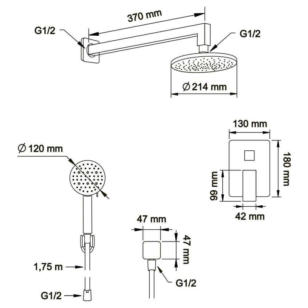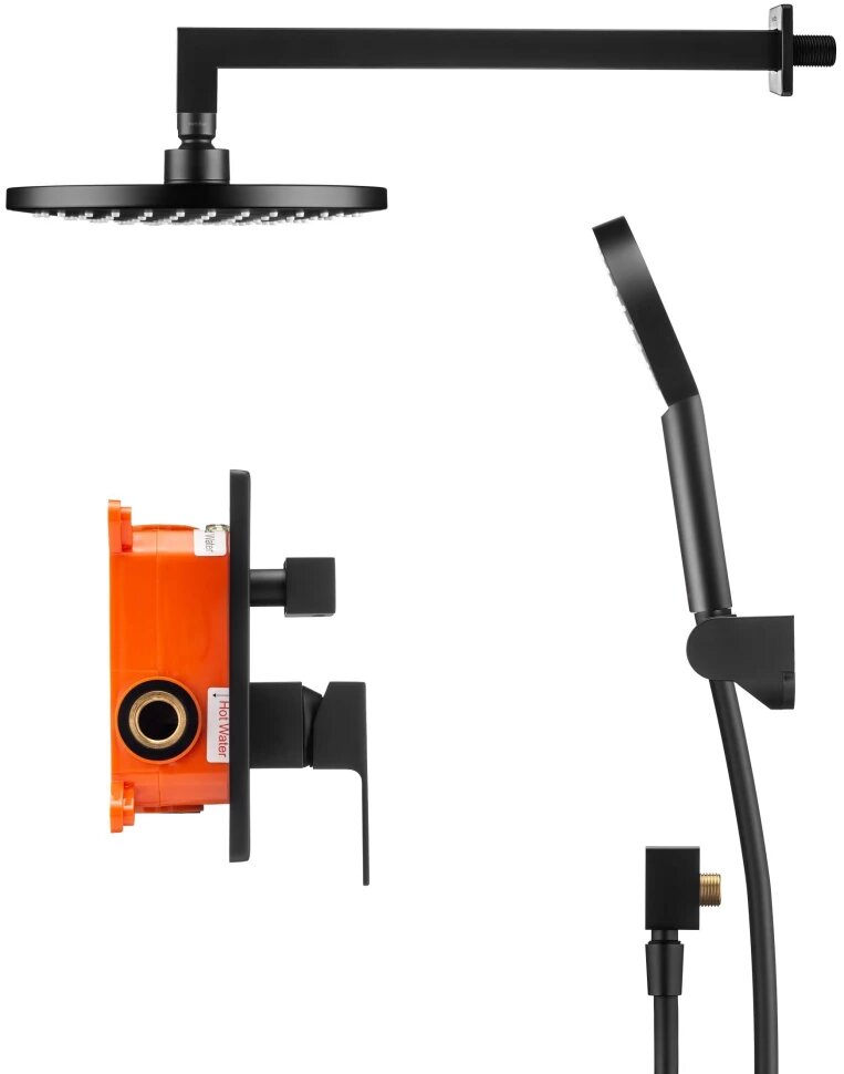 Душевой комплект со встраиваемым смесителем с монтажным боксом и верхним душем Swedbe Platta
