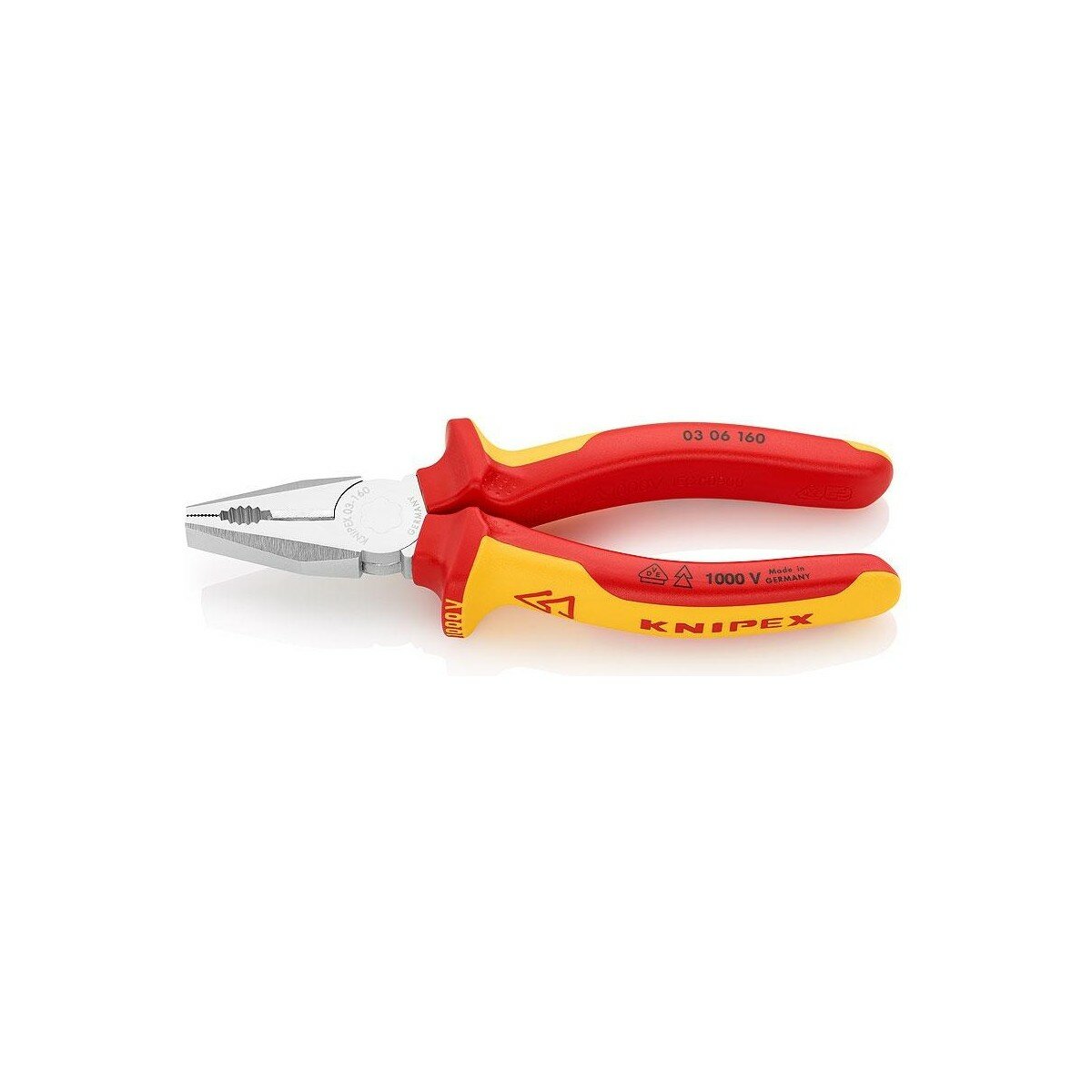 Плоскогубцы комбинированные VDE, 160 мм, хром, 2-комп диэлектрические ручки, SB KNIPEX KN-0306160SB
