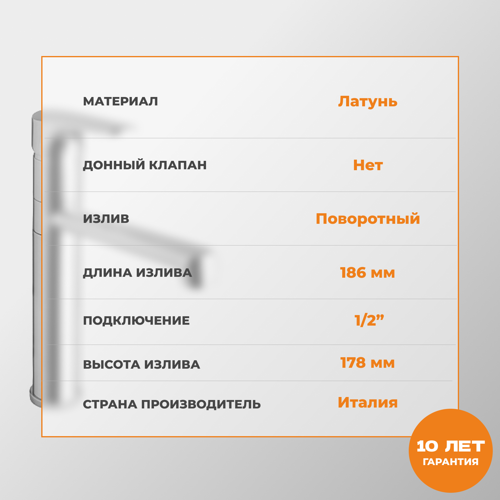 | Длина излива | 186 мм |