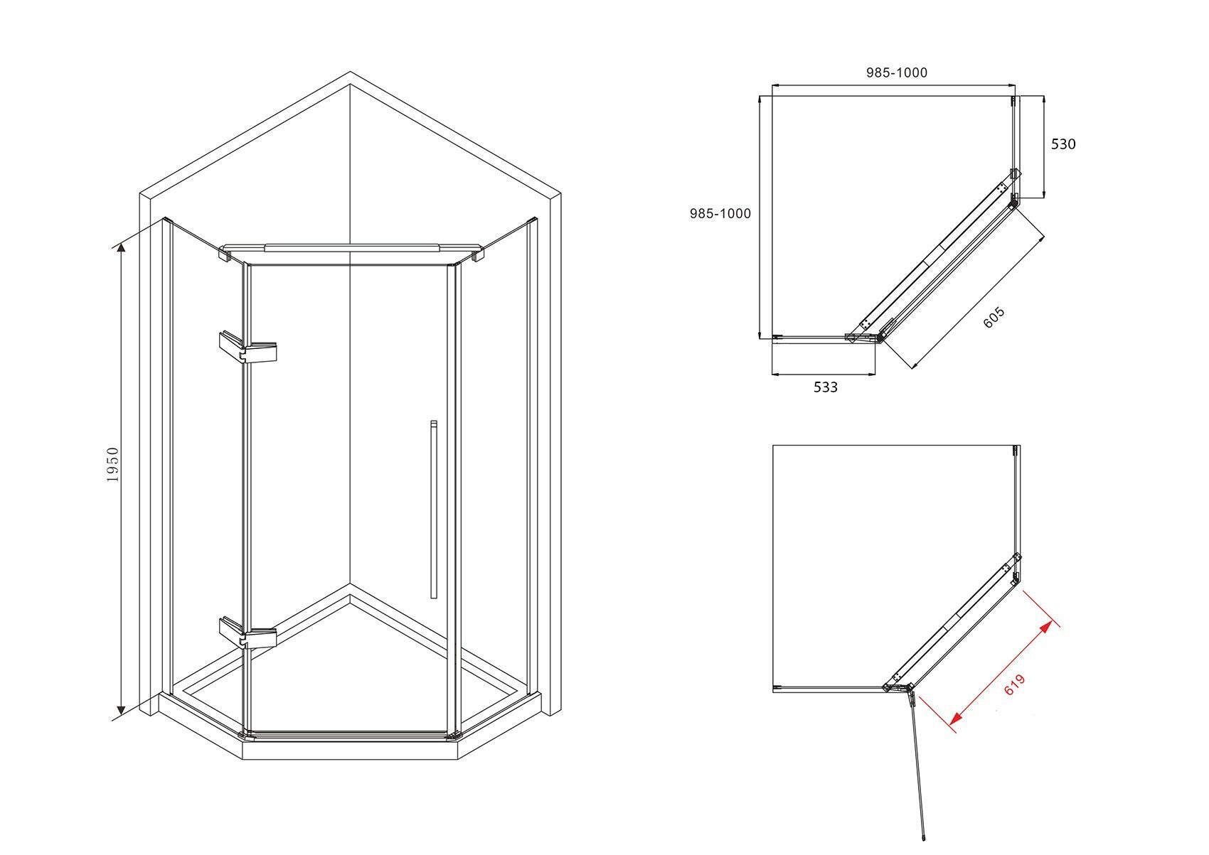 Душевой уголок Abber Ewiges Wasser 1000х1000 мм (габариты площадки) AG05100