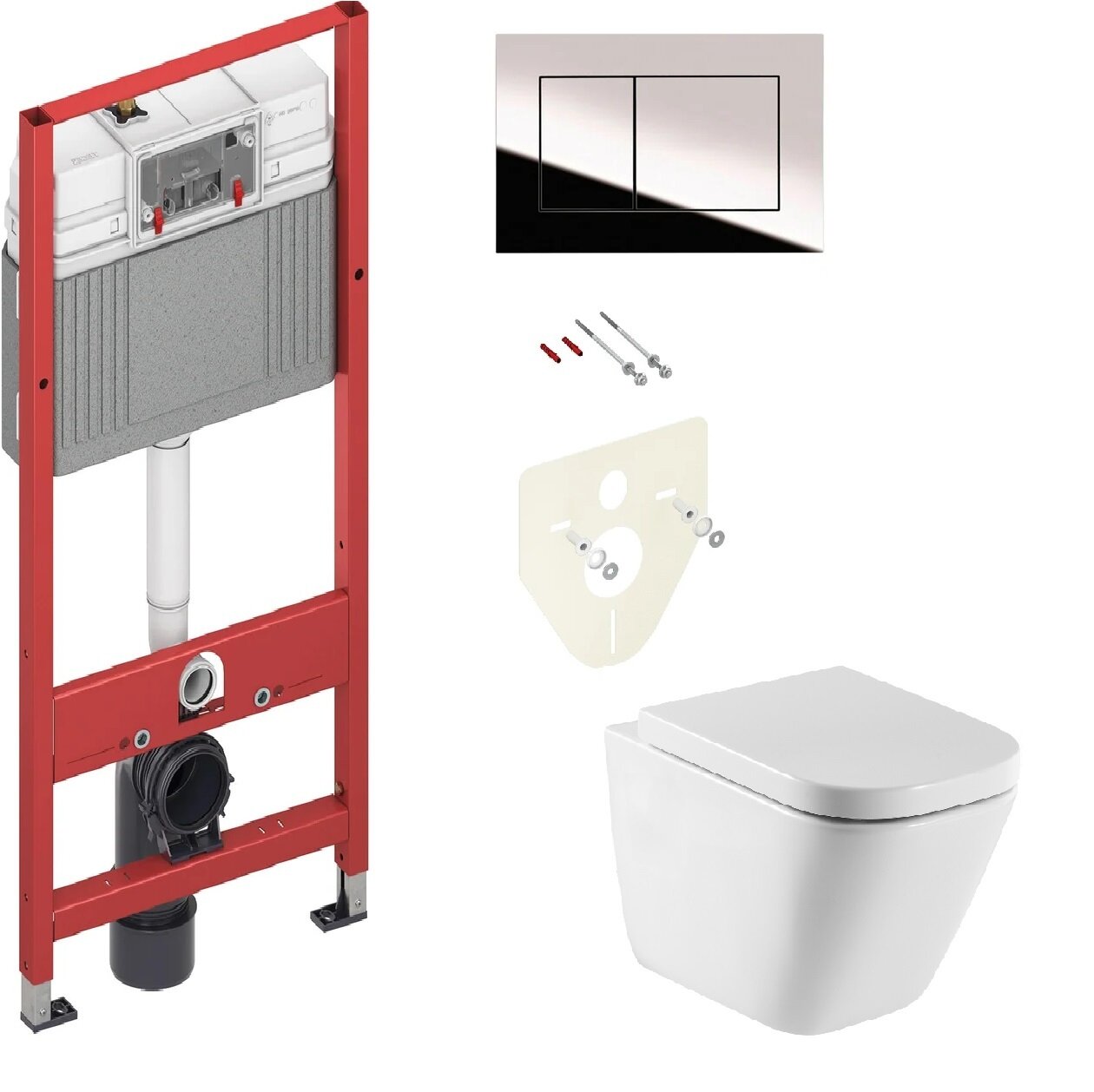 Купить Комплект Инсталляция для унитазов TECE Now 9400012 4 в 1 с панелью смыва хром глянцевый + Унитаз подвесной Roca Gap 34647L000 Clean Rim