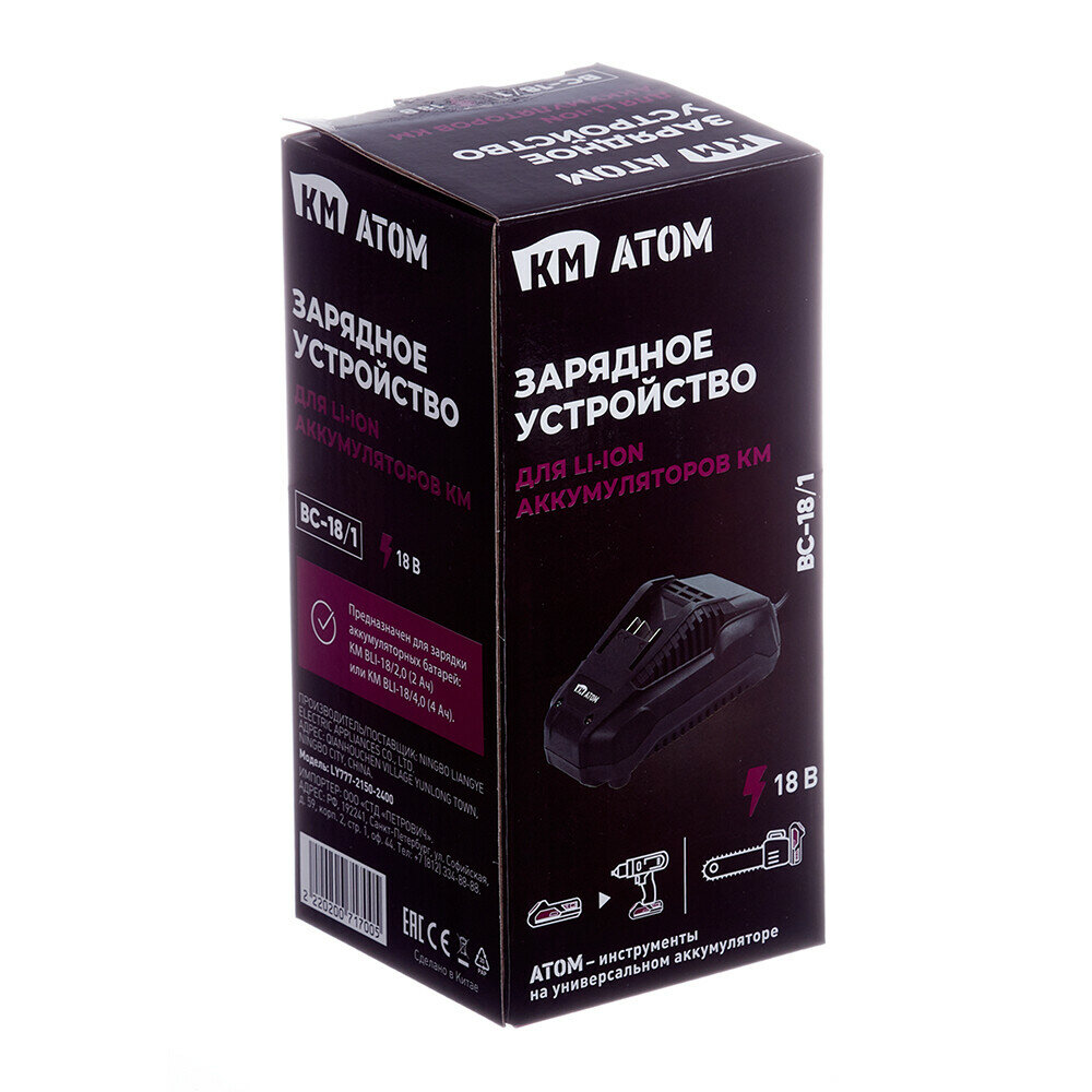 Зарядное устройство КМ АТОМ BC-18/1 18В Li-Ion интересное: