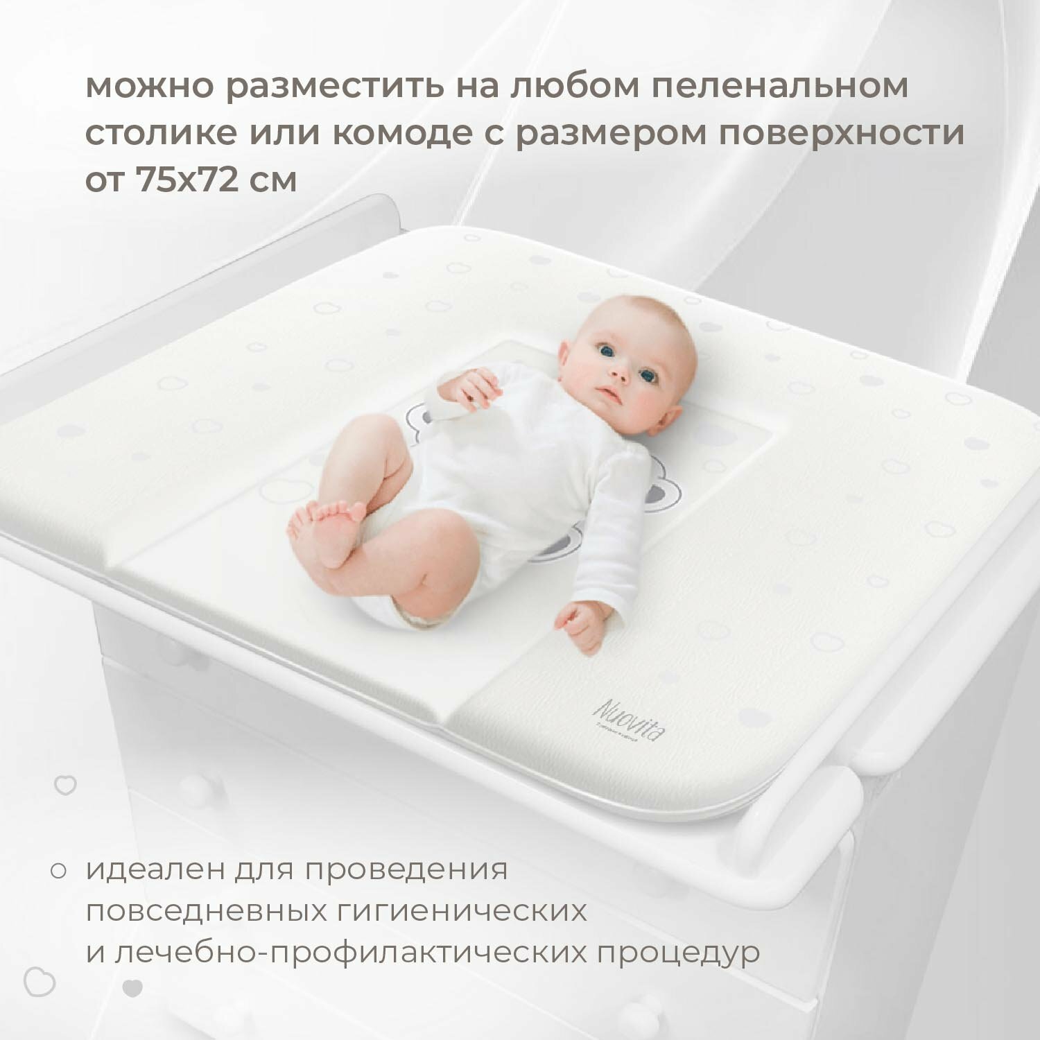 Матрасик для пеленания мягкий Nuovita PARTE, 750х720 (белый) интересное: