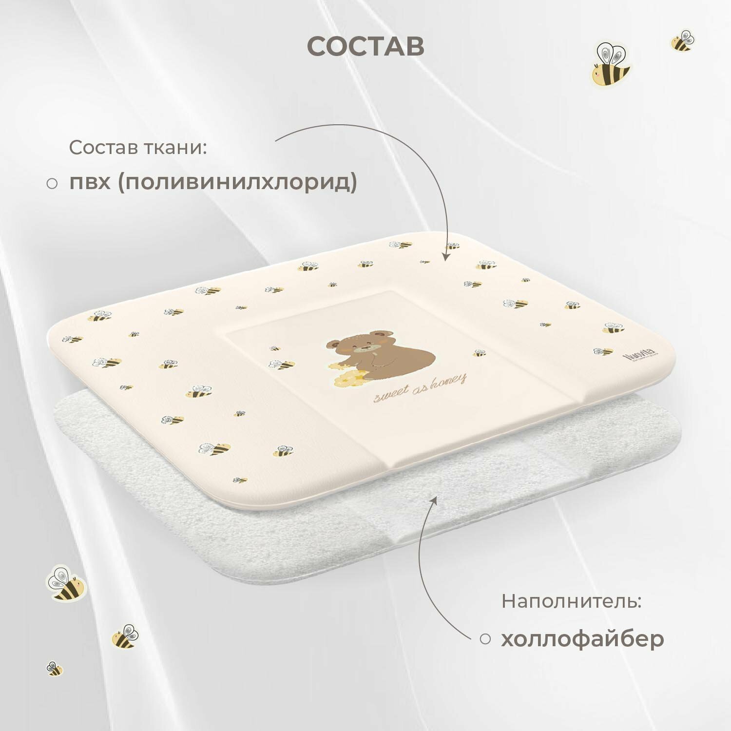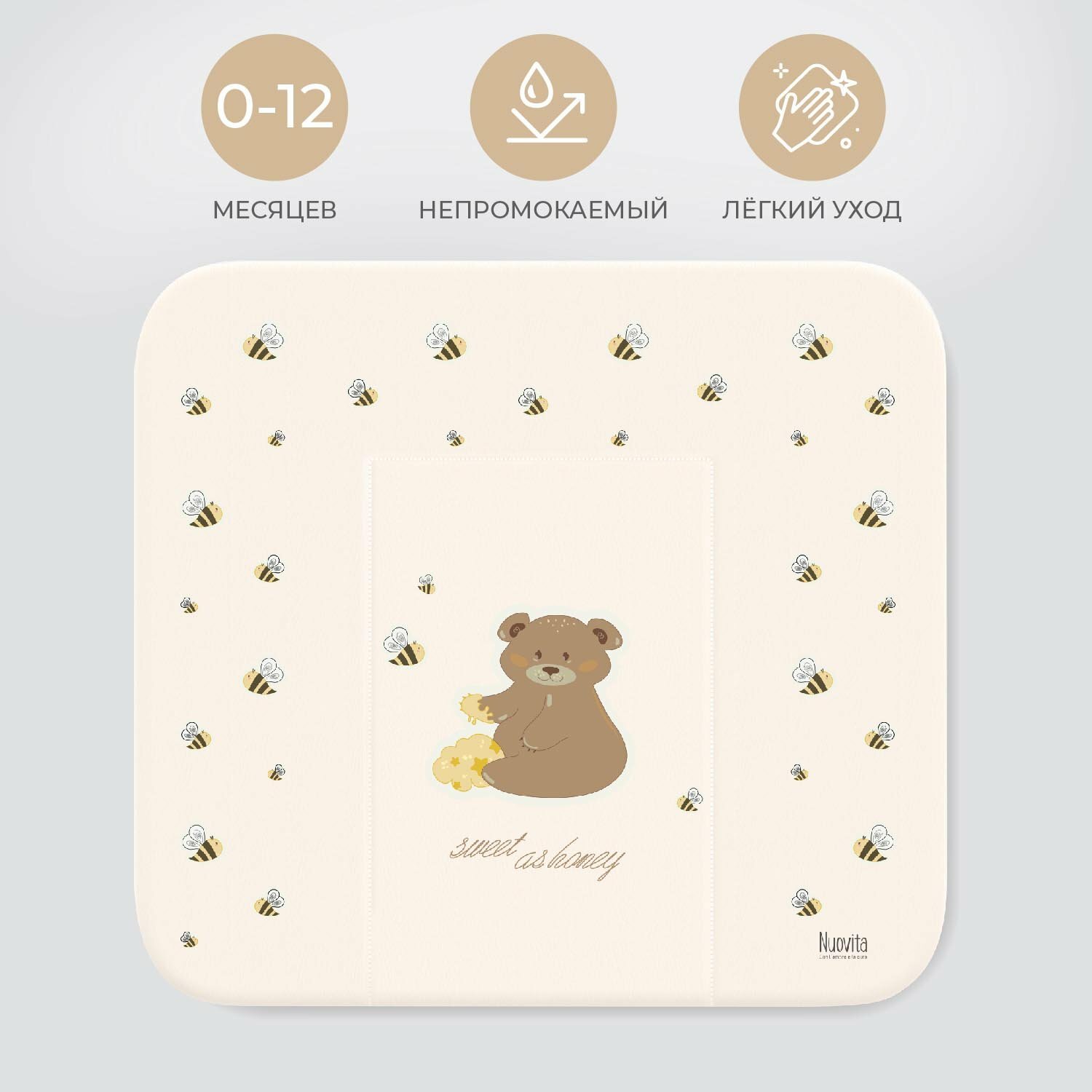 Матрасик для пеленания мягкий Nuovita HONEY BEAR, 750х720 (ваниль) интересное: