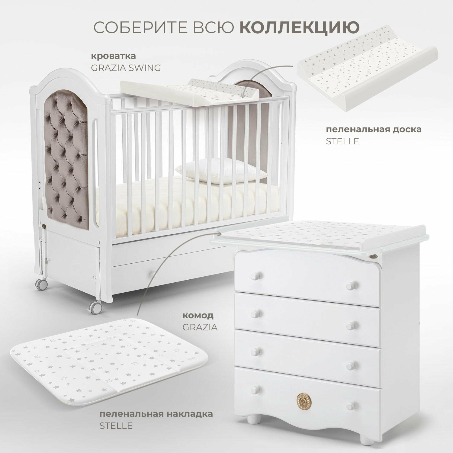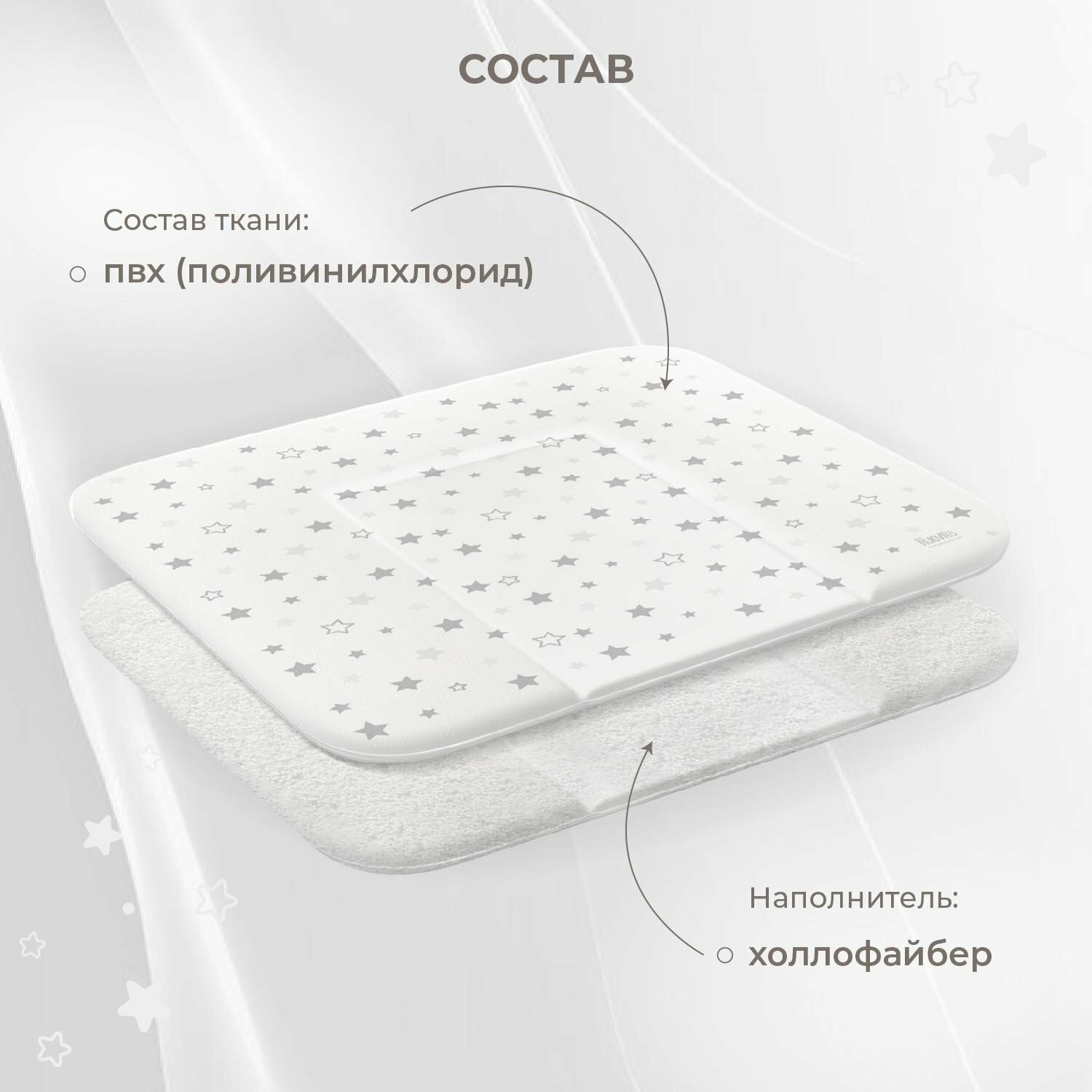 Матрасик для пеленания мягкий Nuovita STELLE, 750х720 мм (белый) интересное: