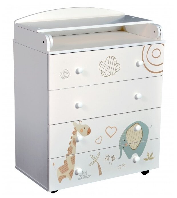 Купить Пеленальный комод ByTwinz "Сафари" белый