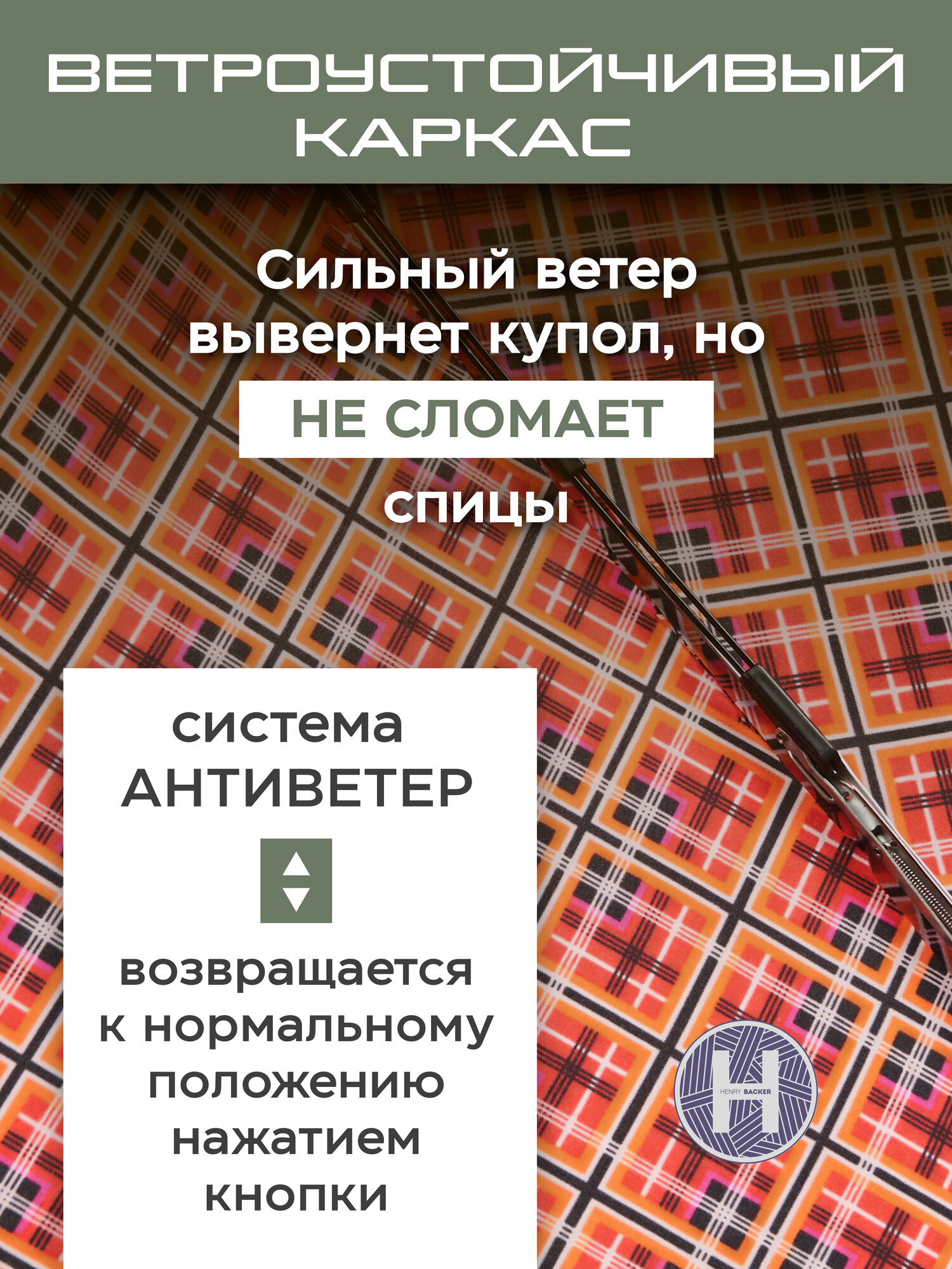 Q2204 CheckRed (Красная клетка) Зонт женский автомат Henry Backer интересное: