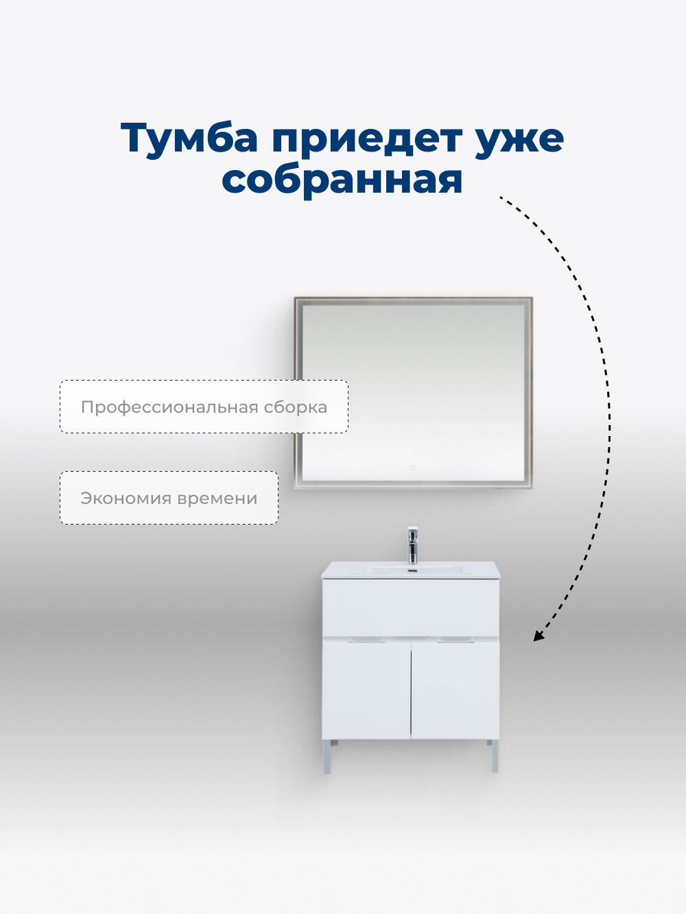 Тумба с раковиной для ванной Кристалл 50 белая.