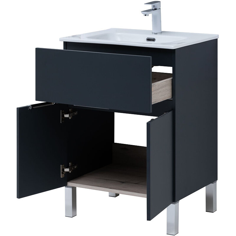 Тумба с раковиной Алвита New 60 1 ящик 2 дверцы антрацит матовая