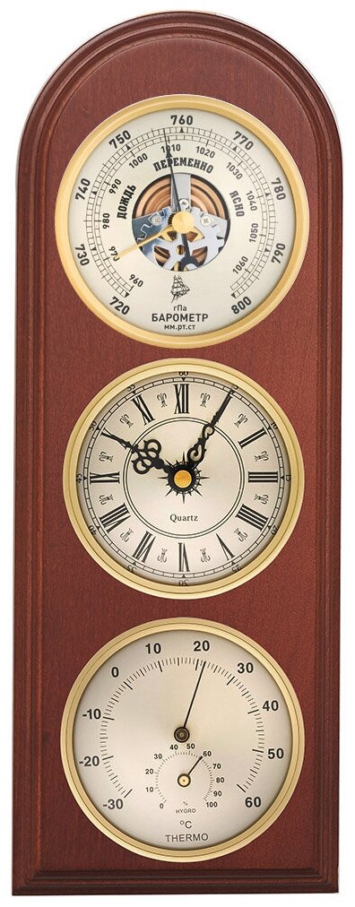 Метеостанция натуральное дерево настенная Бриг БМ93010-ЧБ(ТГ)-М часы барометр термометр гигрометр интересное: