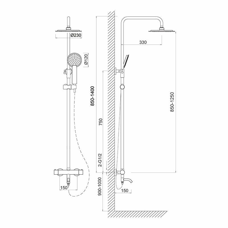 MELODIA Душевая система без смесителя Round: верх.душ d235мм, ручн.душ d120мм, 3ф., хром 14518