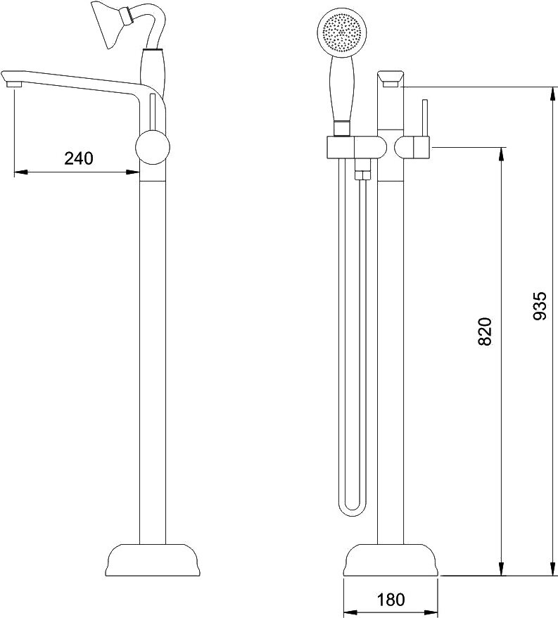 Смеситель для ванны напольный Aquanet JA-5001 с душевым гарнитуром, хром