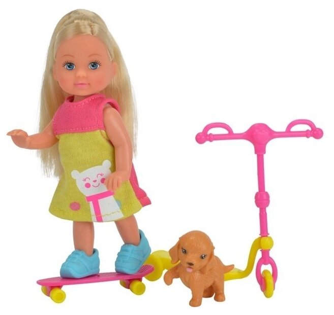 Кукла Simba Evi на скутере и скейт и собачка 12 см 5732295 интересное: