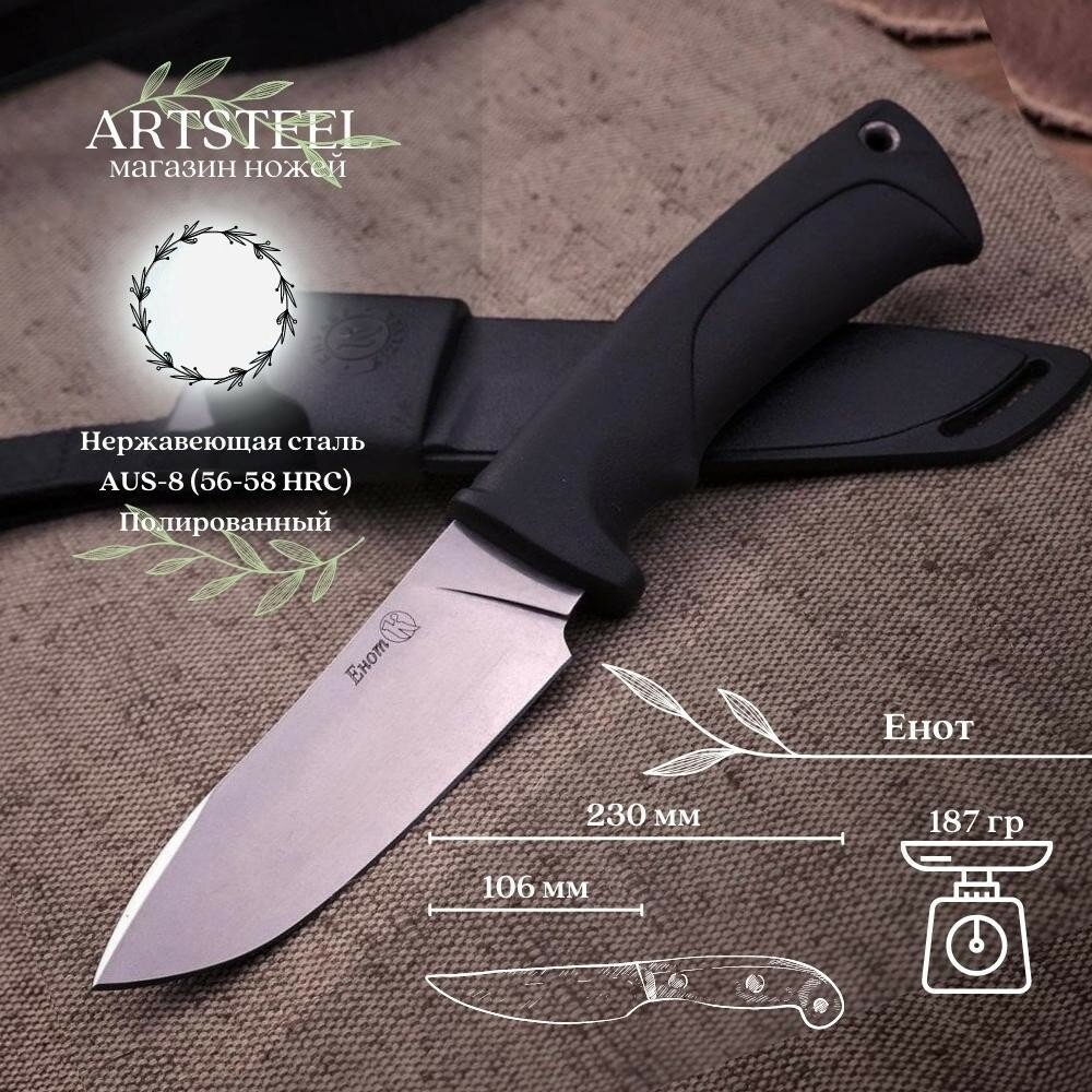 Охотничий нож Енот (скинер), сталь AUS8, рукоять эластрон интересное: