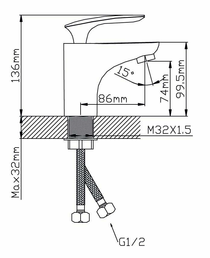 POTATO Смеситель д/умывальника (Zn) монолит, кер.картр.35мм, гайка, белый/хром, P10234-7