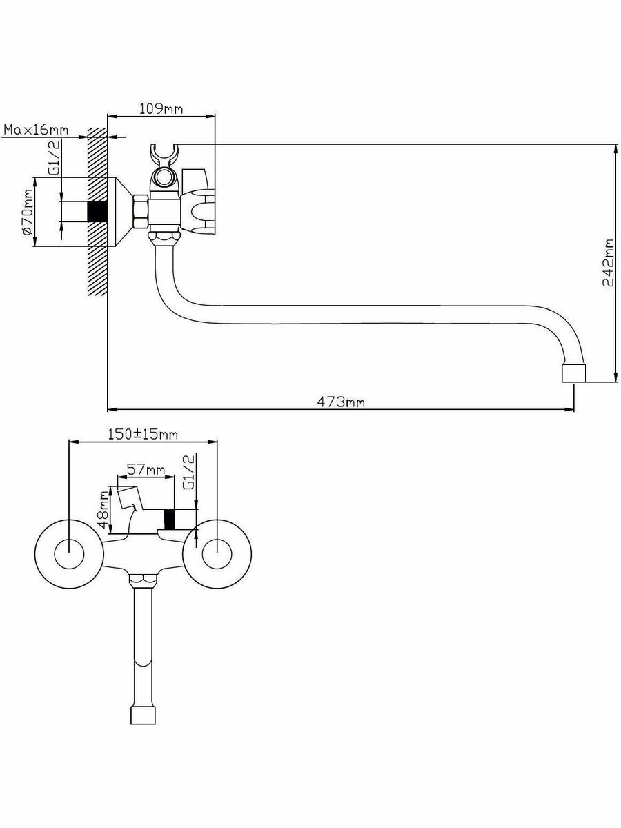 P2367 Смеситель универсальный с изливом 40см с перекл. Potato