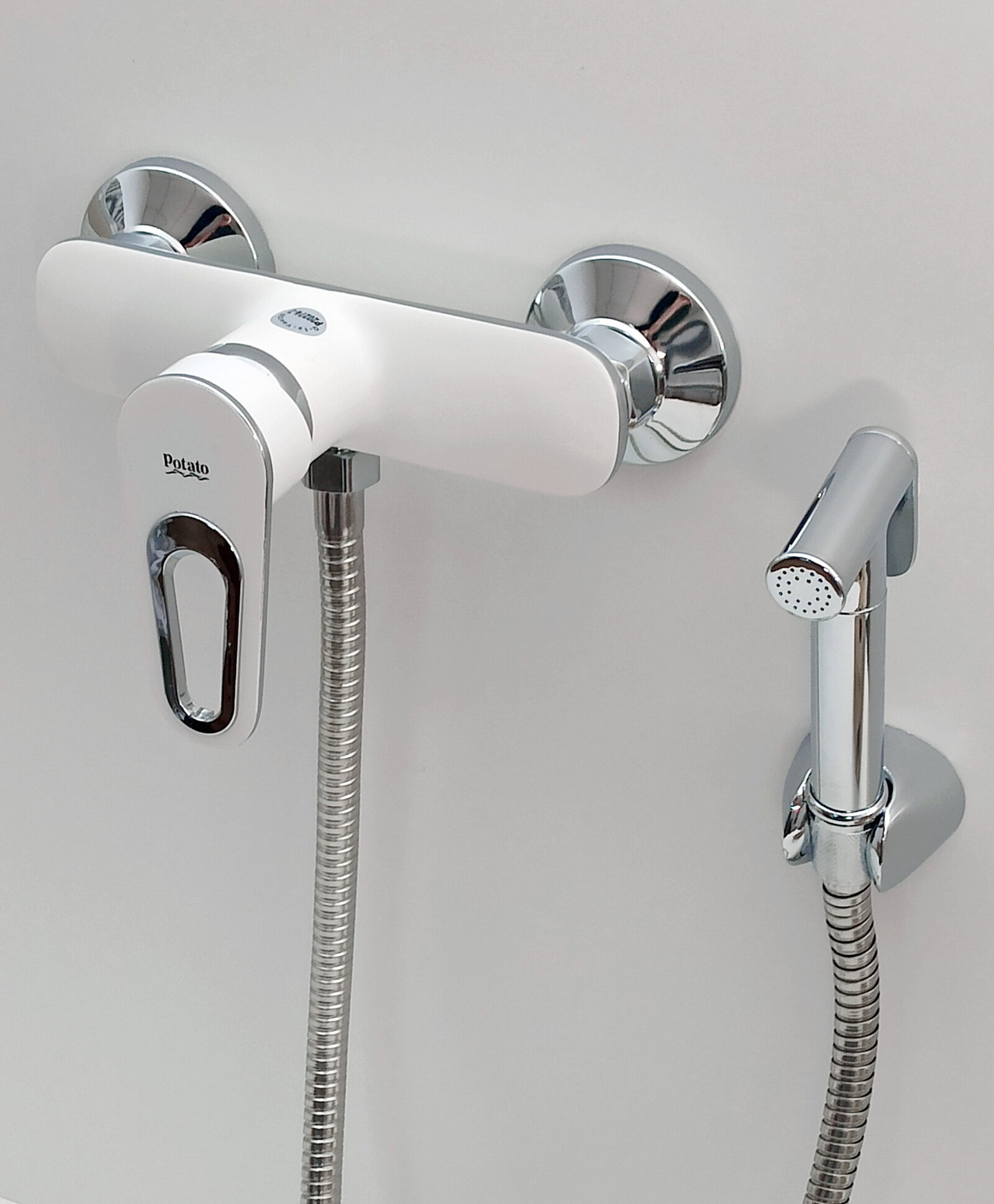 POTATO Смеситель для душа (Zn) с гигиенической лейкой, кер.картр.35мм, белый, P20274-7